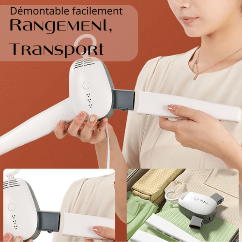 La solution pour en finir avec les vêtements humides et froissés. Ce cintre sèche-linge défroisseur portable est conçu pour sécher vos chemises, blousons, et autres vêtements en un rien de temps, où que vous soyez : à la maison, en vacances ou même en déplacement professionnel. Avec ses dimensions compactes, il se glisse facilement dans votre valise sans prendre de place.